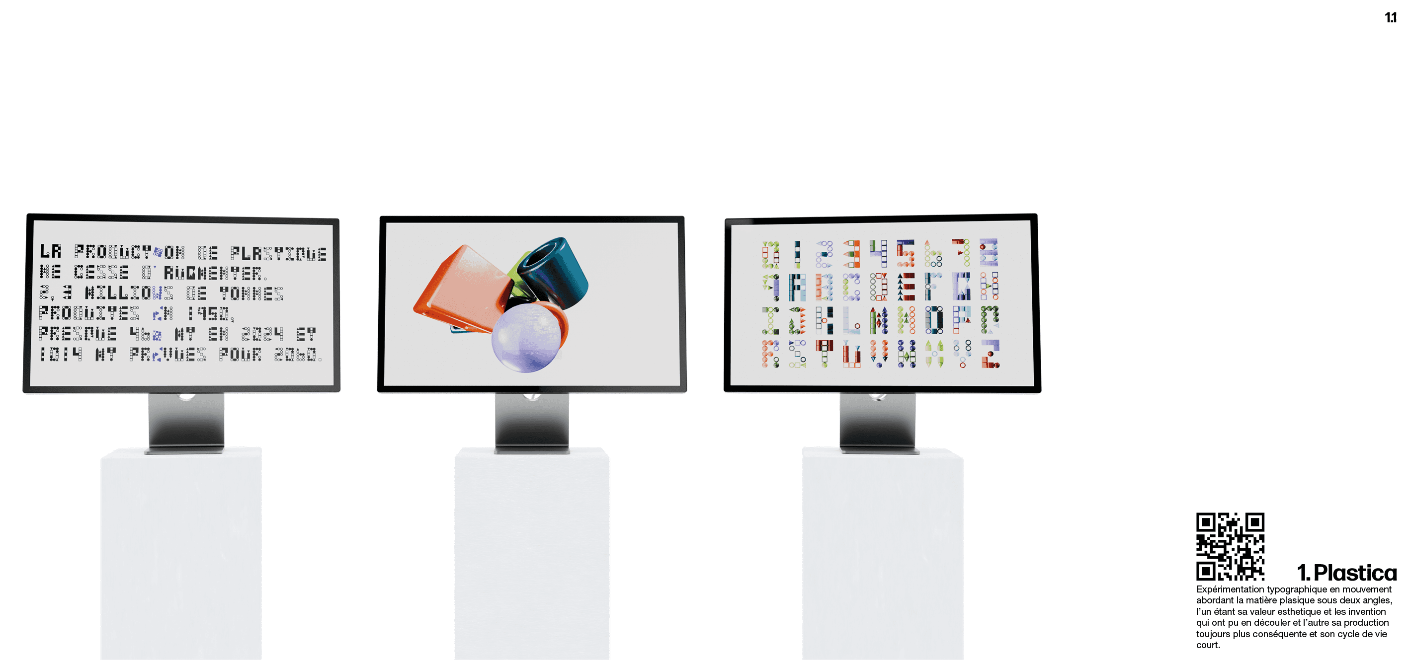 Expérimentation typographique en mouvement qui explore la matière plastique à la fois comme matériau esthétique et comme moyen de production de masse, intensif et éphémère.